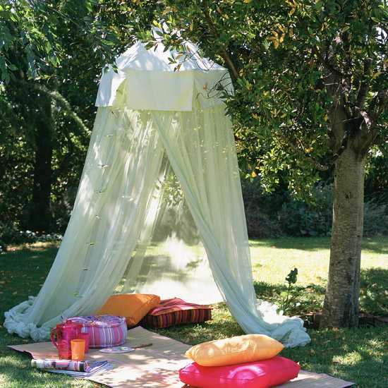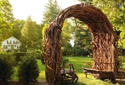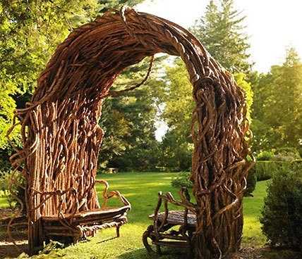 Достаточно часто на садовом участке можно видеть беседки. Но своими руками не так уж и просто ее построить. Да и данное мероприятие является затратным. Поступить можно иначе. Возьмите арматуру либо высокие шесты, из которых образуйте шалашик. Рядом с таким сооружением высаживаются плетистые растения. Естественно, от дождя и осадков защитить такая беседка не способна. Но от солнца укрыться вполне возможно. К тому же такое изделия будет являться отличным декоративным элементом.