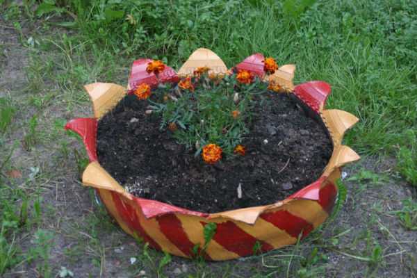 Цветник из автомобильной покрышки