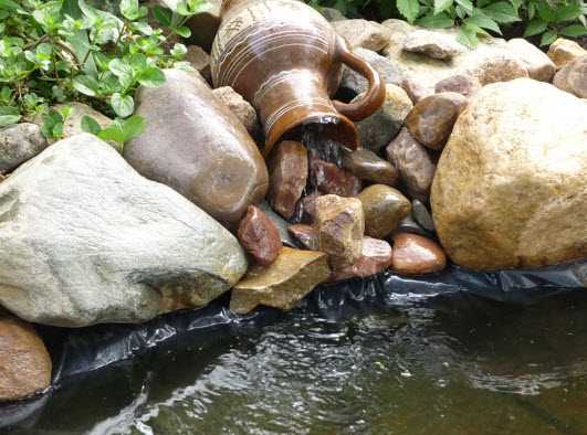 Кроме того, можно выполнить впадающий в пруд ручей. Правда, это потребует дополнительных затрат на насос, который работает от электричества. Но, зато вода будет постоянно циркулировать.