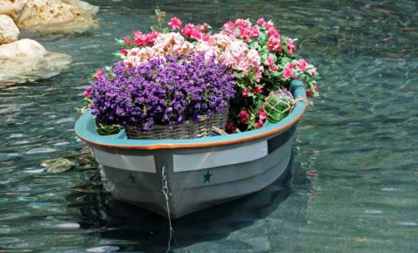 Кроме того, украсить пруд можно плавающими цветниками, выполненными и пенопласта, в который вставляется пластиковая емкость с почвой для цветов. Также на берегу такого водоема можно в качестве цветника установить старую деревянную лодку.