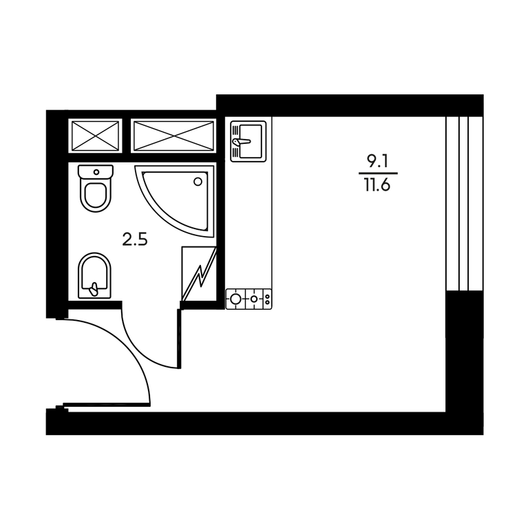 Квартира-студия представляет собой единое жилое пространство, в котором отделён стенами только санузел. Все остальные зоны находятся в одной большой комнате.