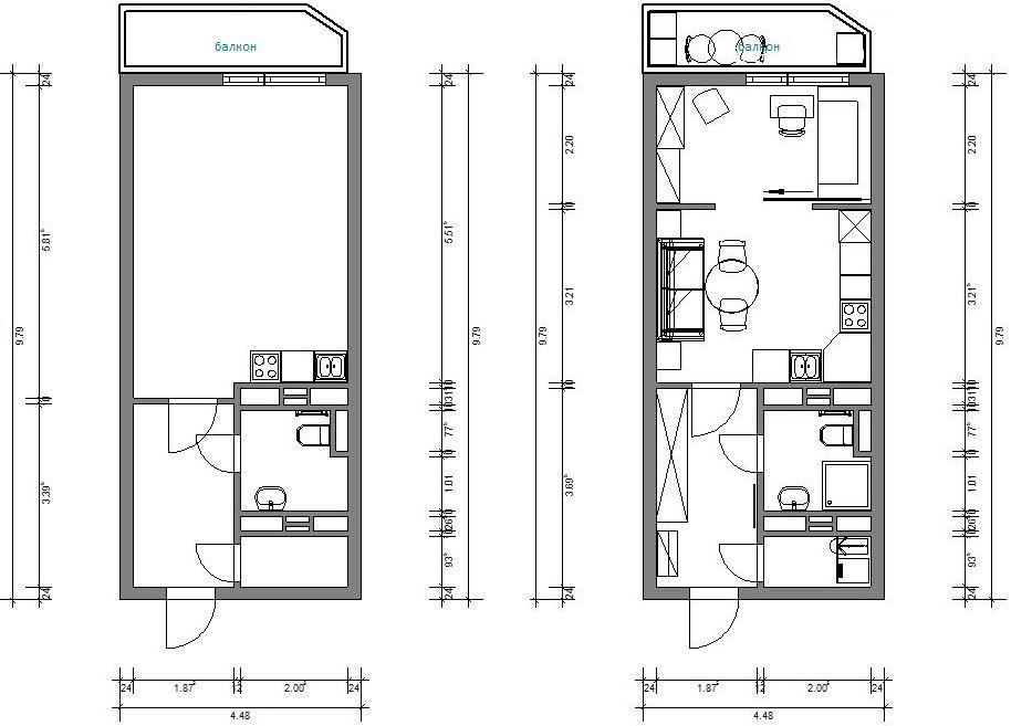 - В первую очередь необходимо избавиться от всех ненужных перегородок. Создаётся единое пространство. Стоит помнить о том, что любые изменения в планировке следует узаконить в соответствующих инстанциях.