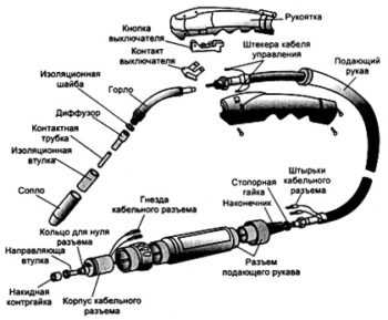 - Специальной кассеты для проволоки, чтобы подавать ее автоматическим способом в зону сварки.