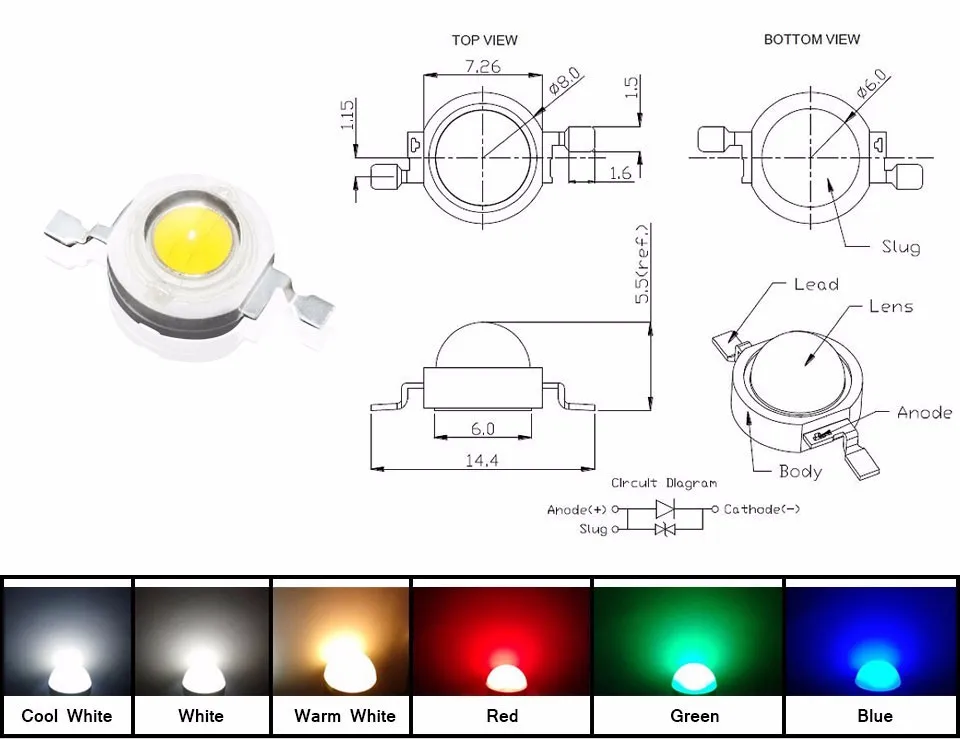 ПРИМЕЧАНИЕ. Светодиод на приведенной выше схеме представляет собой светодиод 12 В, 1 Вт , как показано ниже:
