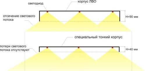 - направленное свечение светодиодов, благодаря чему освещается немного пространства;