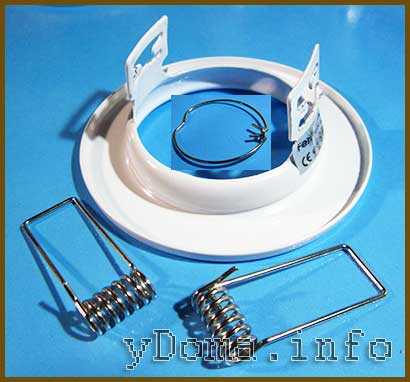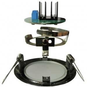 При выходе из строя, лампочку заменить не удастся. Придется или менять весь светильник, или искать светодиоды. Да и цена его не слишком мала. Светильники, не имеющие патрон, прижимают лампу с помощью пружины, имеющую форму разрезанного кольца.