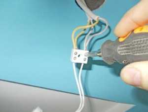 - Отключите электричество в доме и подключите светильник к общей электропроводке. Чаще всего он оснащается клеммами, которые значительно облегчают присоединение. Во время подключения проследите, чтобы кто-нибудь из вашей семьи случайно не включил рубильник. Этот шаг лучше выполнять в паре с кем-то.