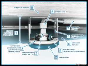Электрическая схема электропроводки для точечных потолочных светильников