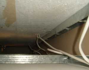 Место, в котором было произведено соединение, крепиться хомутом к потолку при помощи самореза. Все, прокладка проводов завершена.