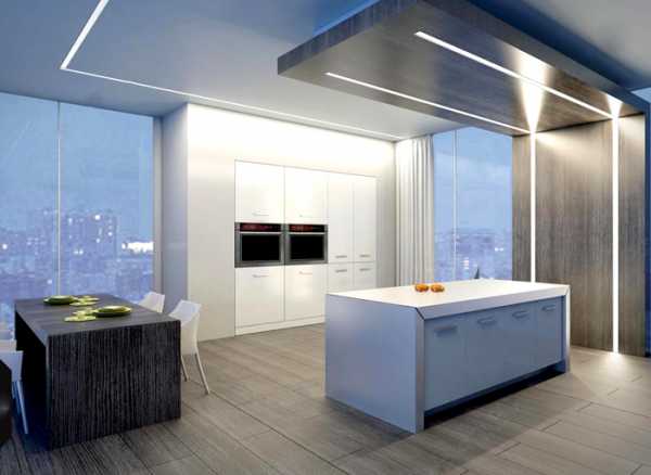 Кухня в скандинавском стиле с использованием освещения на светодиодах