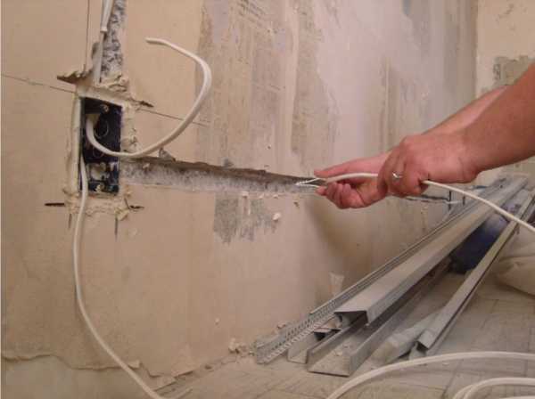 В штробах провода лучше всего укладывать в гофрированной трубе. При таком способе перегоревший кабель легко можно будет извлечь и заменить – вскрывать штробу не придется.