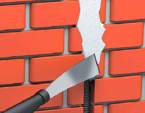 На перфоратор устанавливают специальную круглую насадку и высверливают углубления под распределительные короба, выключатели, розетки. Для прокладки кабелей в стенах штробят продольные канавки. Эту операцию на выбор проделывают при помощи перфоратора или болгарки, но без грязи и пыли не обойтись. Рекомендуемая глубина канавки 2 см, ширина произвольная с учетом укладки всех проводов.