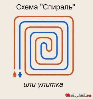В улитке мы укладываем трубы, описывая периметр комнаты, начиная с краев, и стремимся к центру, постоянно сокращая радиус, а затем в обратную сторону.