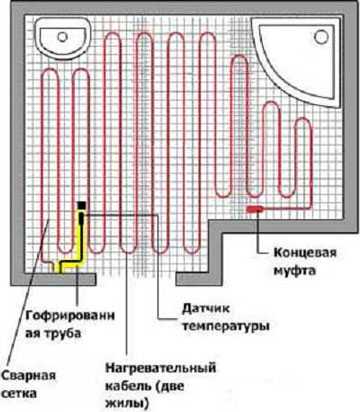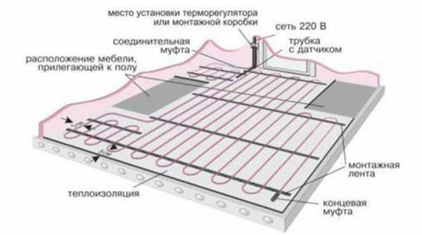 Монтаж электрического теплого пола, схема с одножильным кабелем