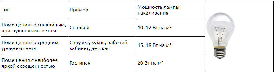 Для самостоятельного проектирования домашнего освещения можно воспользоваться следующей таблицей сравнения источников света по мощности: