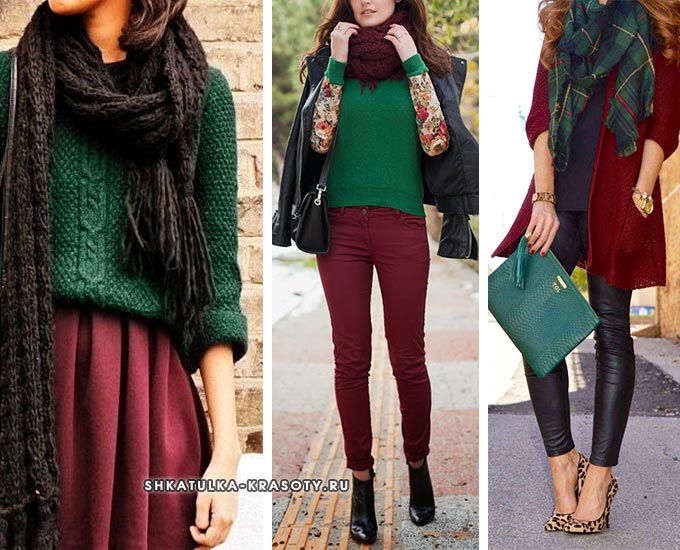 Бордовый и темно-зеленый наряд Если вам не нравятся яркие или светлые цвета, вы все равно можете носить эти 2 цвета вместе, выбрав более глубокие и приглушенные оттенки.