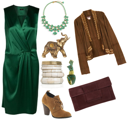 Если вы ищете цвет, который сочетается с темно-зеленым и в то же время создает утонченный спокойный образ , то нет ничего лучше бежевого в разных его оттенках.