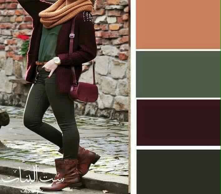 Один из самых интересных и стильных вариантов сочетаний получается при соединении в наряде одинаковых по тону или разных оттенков одного цвета. Вы можете добавить к базовому темно тону более светлые, насыщенные краски: мятный, оливковый, светлые тона хаки, салатовый и другие.