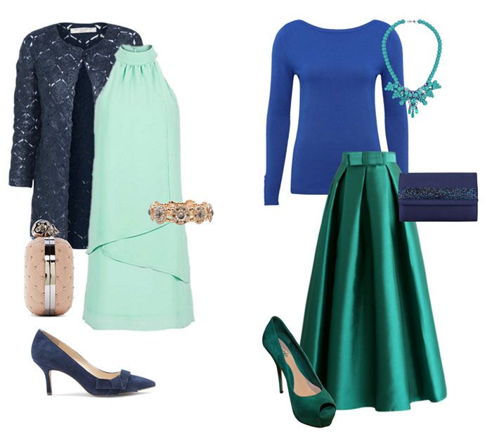 Эти цвета великолепно смотрятся и подчеркивают красоту друг друга. Образы на фото: