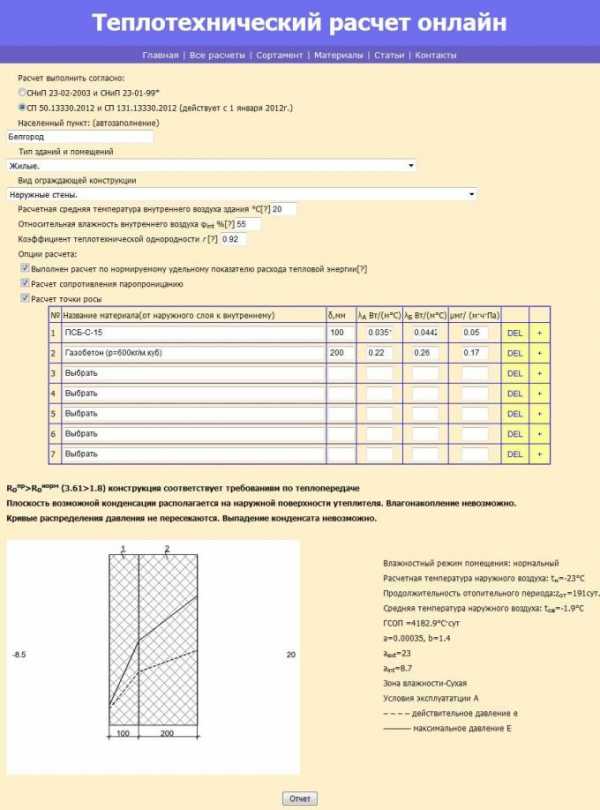 Теплотехнический расчет (пример, программа, калькулятор онлайн).