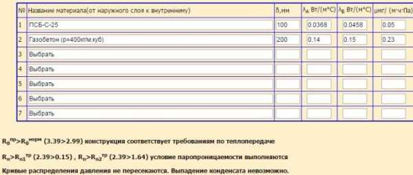 При отсутствии необходимых материалов их можно добавить самостоятельно, зная теплопроводность.