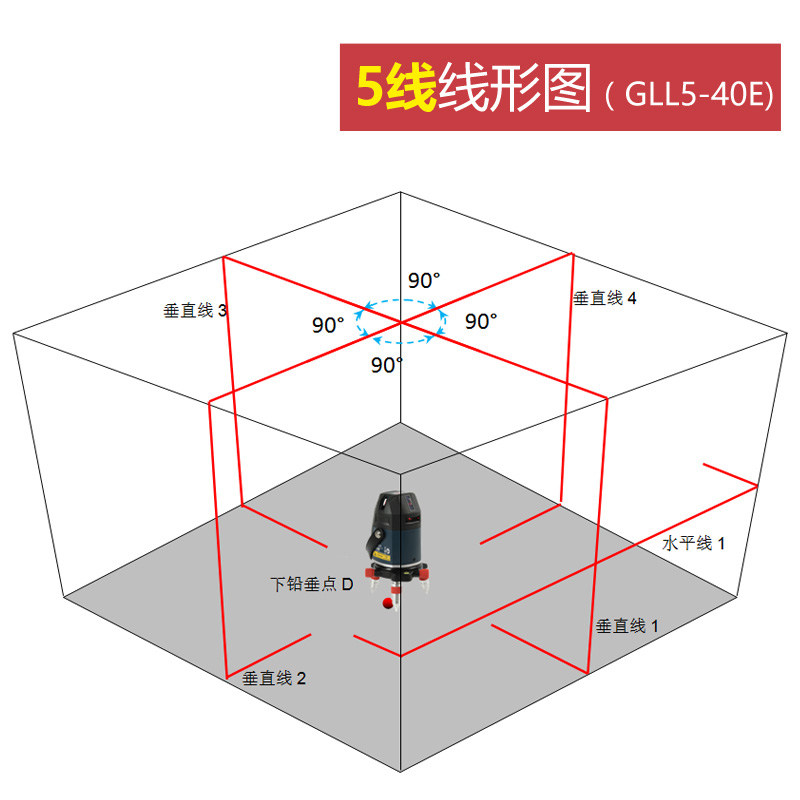4. 5 лазерных линий — 4 вертикальных и 1 горизонтальная