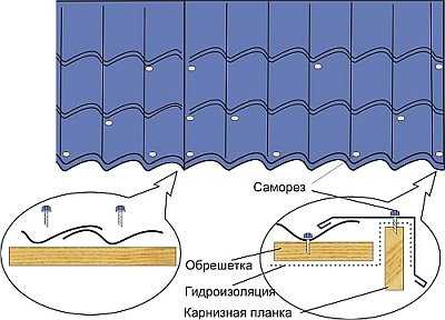 - ΠΠΎΡΠ»Π΅ ΡΡΠΎΠ³ΠΎ ΠΏΡΠΈΡΡΡΠΏΠ°ΡΡ ΠΊ ΠΌΠΎΠ½ΡΠ°ΠΆΡ ΠΊΠ°ΡΠ½ΠΈΠ·Π½ΠΎΠΉ ΠΏΠ»Π°Π½ΠΊΠΈ, ΠΊΠΎΡΠΎΡΠ°Ρ ΡΡΡΠ°Π½Π°Π²Π»ΠΈΠ²Π°Π΅ΡΡΡ ΠΏΠ΅ΡΠ΅Π΄ Π½Π°ΡΡΠΈΠ»ΠΎΠΌ ΠΊΡΠΎΠ²Π»ΠΈ Π»ΠΈΡΡΠ°ΠΌΠΈ ΠΌΠ΅ΡΠ°Π»Π»ΠΎΡΠ΅ΡΠ΅ΠΏΠΈΡΡ. Π£ΡΡΠ°Π½ΠΎΠ²ΠΊΡ ΠΏΠ»Π°Π½ΠΊΠΈ ΠΎΡΡΡΠ΅ΡΡΠ²Π»ΡΡΡ ΠΏΠΎΠ²Π΅ΡΡ Π²ΠΎΠ΄ΠΎΡΡΠΎΡΠ½ΠΎΠ³ΠΎ ΠΊΡΠ΅ΠΏΠ»Π΅Π½ΠΈΡ Ρ ΠΏΠΎΠΌΠΎΡΡΡ ΡΠ°ΠΌΠΎΡΠ΅Π·ΠΎΠ², Π²Π²ΠΈΠ½ΡΠΈΠ²Π°Π΅ΠΌΡΡ Π² ΠΊΠ°ΡΠ½ΠΈΠ·Π½ΡΡ ΠΈΠ»ΠΈ Π»ΠΎΠ±ΠΎΠ²ΡΡ Π΄ΠΎΡΠΊΡ. Π¨Π°Π³ ΠΌΠ΅ΠΆΠ΄Ρ Π²ΠΈΠ½ΡΠ°ΠΌΠΈ ΠΏΠΎΠ΄Π±ΠΈΡΠ°ΡΡ ΠΏΡΠΈΠ±Π»ΠΈΠ·ΠΈΡΠ΅Π»ΡΠ½ΠΎ ΡΠ°Π²Π½ΡΠΉ 30-35 ΡΠ°Π½ΡΠΈΠΌΠ΅ΡΡΠΎΠ².