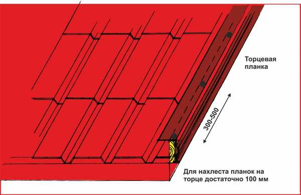 ΠΠ½Π°ΡΠ°Π»Π΅ Ρ ΡΠΎΡΡΠ΅Π²ΠΎΠΉ ΡΡΠΎΡΠΎΠ½Ρ ΠΊ ΡΠ΅ΡΠ΅ΡΡΠ°ΡΠΎΠΉ ΠΊΠΎΠ½ΡΡΡΡΠΊΡΠΈΠΈ ΠΏΡΠΈΡΠΈΠ²Π°Π΅ΡΡΡ ΡΡΡΡΠ³Π°Π½Π½Π°Ρ Π²Π΅ΡΡΠΎΠ²Π°Ρ Π΄ΠΎΡΠΊΠ° 25 Ρ 80 ΠΌΠΌ, Π° ΡΠΆΠ΅ Π½Π° Π½Π΅ΠΉ ΡΠΈΠΊΡΠΈΡΡΠ΅ΡΡΡ ΠΏΠ»Π°Π½ΠΊΠ° Ρ ΠΏΠΎΠΌΠΎΡΡΡ Π±ΠΎΠ»ΡΠΎΠ²ΡΡ ΡΠ°ΠΌΠΎΡΠ΅Π·ΠΎΠ² Ρ ΡΠΏΠ»ΠΎΡΠ½ΠΈΡΠ΅Π»ΡΠ½ΠΎΠΉ ΡΠ΅Π·ΠΈΠ½ΠΊΠΎΠΉ. Π¨Π°Π³ ΠΌΠ΅ΠΆΠ΄Ρ Π²ΠΊΡΡΡΠΈΠ²Π°ΡΡΠΈΠΌΠΈΡΡ ΠΌΠ΅ΡΠΈΠ·Π°ΠΌΠΈ Π΄ΠΎΠ»ΠΆΠ΅Π½ Π±ΡΡΡ 0,4 ΠΌ. Π Π°Π±ΠΎΡΡ Π½Π°ΡΠΈΠ½Π°ΡΡ Ρ Π½ΠΈΠΆΠ½Π΅ΠΉ ΡΠ°ΡΡΠΈ ΠΊΡΠΎΠ²Π»ΠΈ, ΠΏΠΎΡΡΠ΅ΠΏΠ΅Π½Π½ΠΎ ΠΏΠΎΠ΄Π½ΠΈΠΌΠ°ΡΡΡ Π²Π²Π΅ΡΡ . ΠΡΠΈ ΡΡΠΎΠΌ ΡΡΠ°Π³ΠΌΠ΅Π½ΡΡ ΠΏΠ»Π°Π½ΠΊΠΈ Π² Π²ΠΈΠ΄Π΅ Π»Π΅ΠΆΠ°ΡΠ΅Π³ΠΎ ΠΎΠ±Π΅ΠΈΠΌΠΈ ΡΡΠΎΡΠΎΠ½Π°ΠΌΠΈ ΠΏΠΎ ΡΠ°Π·Π½ΡΠ΅ ΠΏΠ»ΠΎΡΠΊΠΎΡΡΠΈ ΡΡΠΎΠ½ΡΠΎΠ½Π° ΠΏΡΡΠΌΠΎΠ³ΠΎ ΡΠ³Π»Π° ΡΠΎΠ΅Π΄ΠΈΠ½ΡΡΡΡΡ ΠΌΠ΅ΠΆΠ΄Ρ ΡΠΎΠ±ΠΎΠΉ Π²Π½Π°Ρ Π»Π΅ΡΡ, Π·Π°Ρ Π²Π°ΡΡΠ²Π°Ρ Π½ΠΈΠΆΠ½ΠΈΠΉ ΠΊΡΠ°ΠΉ ΠΏΡΠ΅Π΄ΡΠ΄ΡΡΠ΅ΠΉ ΠΏΠΎΠ»ΠΎΡΡ Π½Π΅ ΠΌΠ΅Π½Π΅Π΅ ΡΠ΅ΠΌ Π½Π° 0,1 ΠΌ.