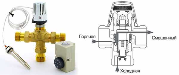 Клапан трехходовой и регулятор температуры есть в продаже по отдельности. Для автономных отопительных систем все же более рациональным и эффективным решением считается приобретение конструкции с терморегулятором.