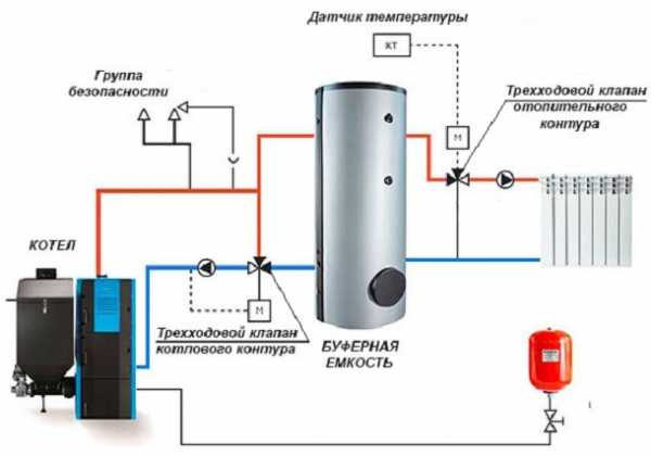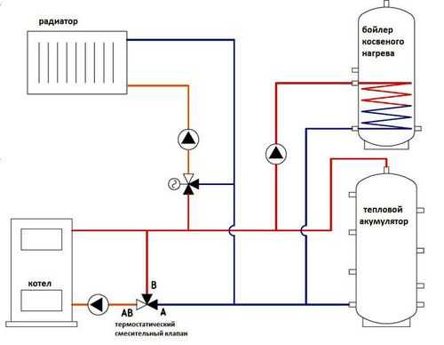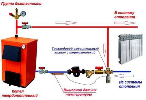 Схема обвязки твердотопливного котла с трехходовым клапаном