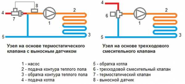 - после чего смешанная вода поступает в отопительный контур теплого пола;