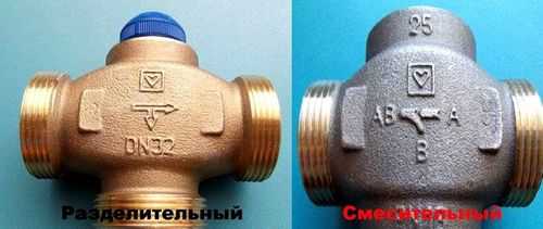 Первые смешивают два потока теплоносителя с разной температурой в один, вторые, наоборот, разделяют один поток на два. А третьи просто переключают движение воды из одного направления (контура) в другой. Две первые разновидности по внешнему виду друг на друга похожи, поэтому на их корпус наносится схема, которая и показывает, для каких целей прибор надо использовать.