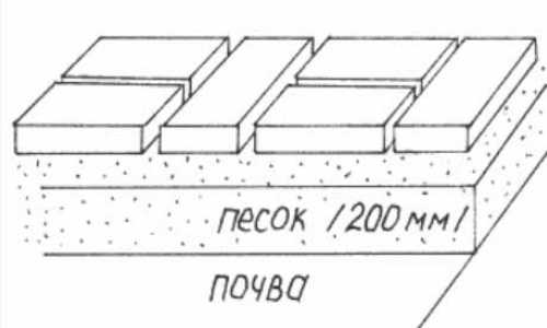 - На песок. Классическая «подушка» для тротуарной плитки.На песок можно укладывать и резиновое покрытие для дорожек на даче.