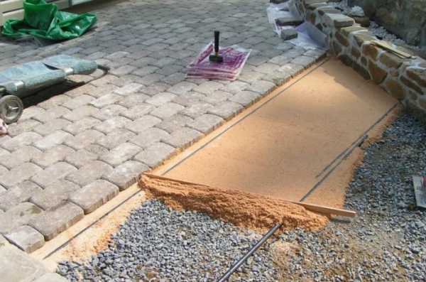 Изображение 3. Укладка брусчатки довольно простой процесс, поэтому все можно выполнить самостоятельно.