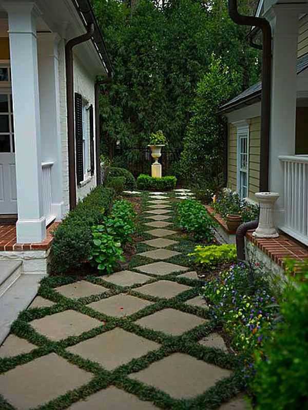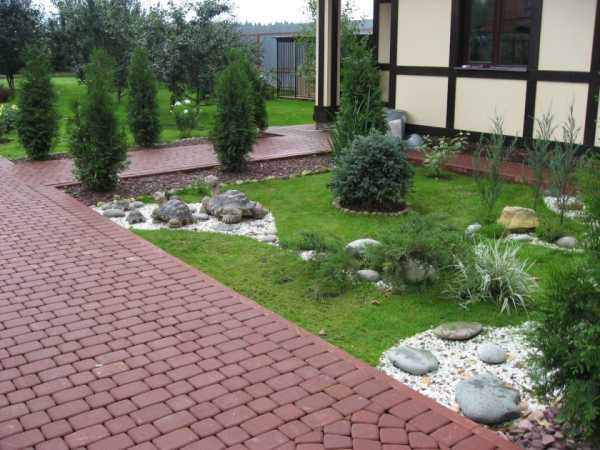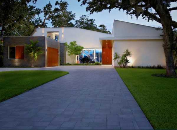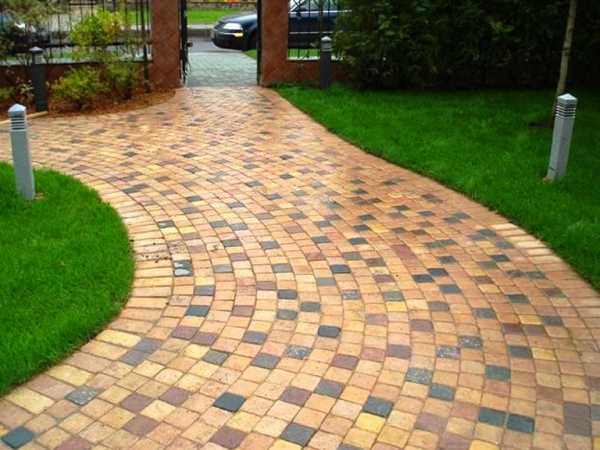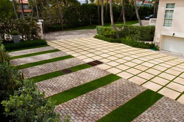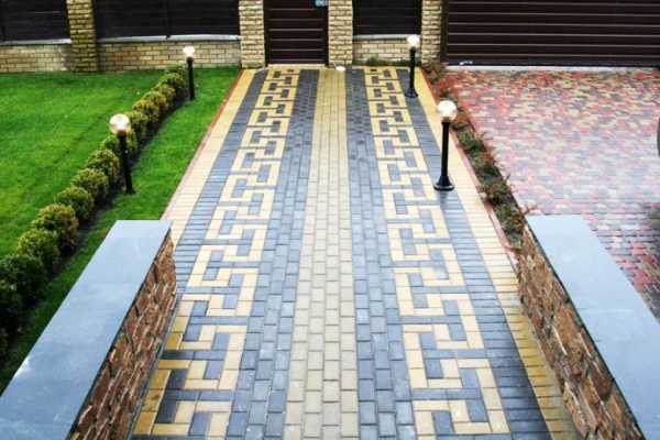 Тротуарная плитка во дворе частного дома: фото стилей и видов укладки
