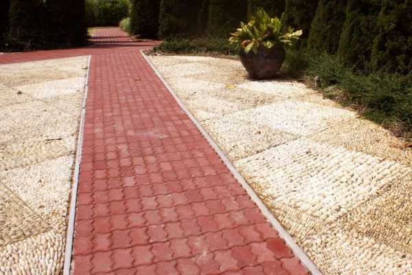 В строительном магазине можно найти широкий ассортимент тротуарной плитки по форме, цвету и текстуре, благодаря чему каждый домовладелец может подобрать оптимальный вариант, учитывая размеры участка и его общий стиль. Главный параметр при выборе плитки – нагрузка, что будет создаваться на мощеное покрытие (автомобильная или пешая дорожка). Основной недостаток плитки – при покупке материала нужно сделать зазор на 5-10% (обрезки и бракованные детали, а также избыток, позволяющий провести штучный ремонт).