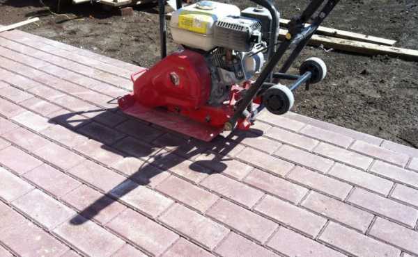 После того, как плитка уложена ее необходимо хорошо утрамбовать. Здесь необходимо использовать бензиновую трамбовку, благодаря которой поверхность укладки плитки будет идеально гладкой и ровной.