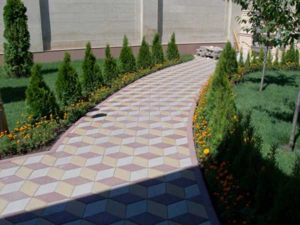 Основание и края дорожки под тротуарной плиткой выполнены из бетона
