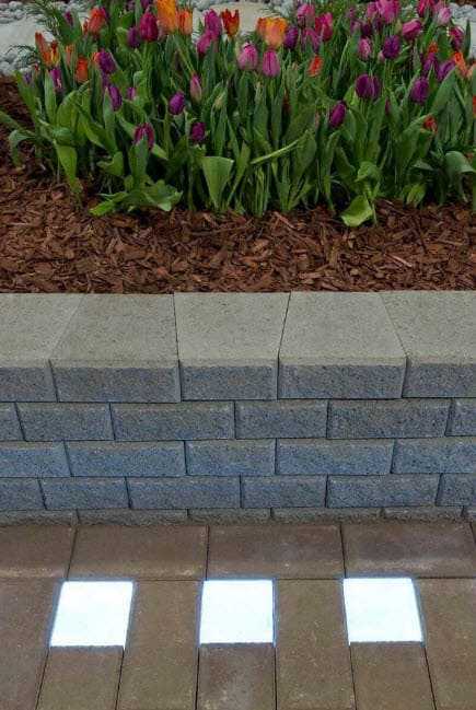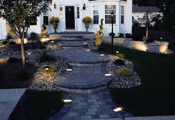 Ступени оформлены вставками из светящейся тротуарной плитки