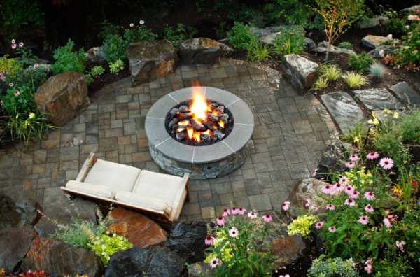 Круглые площадки легче оформлять с помощью плитки небольшого размера
