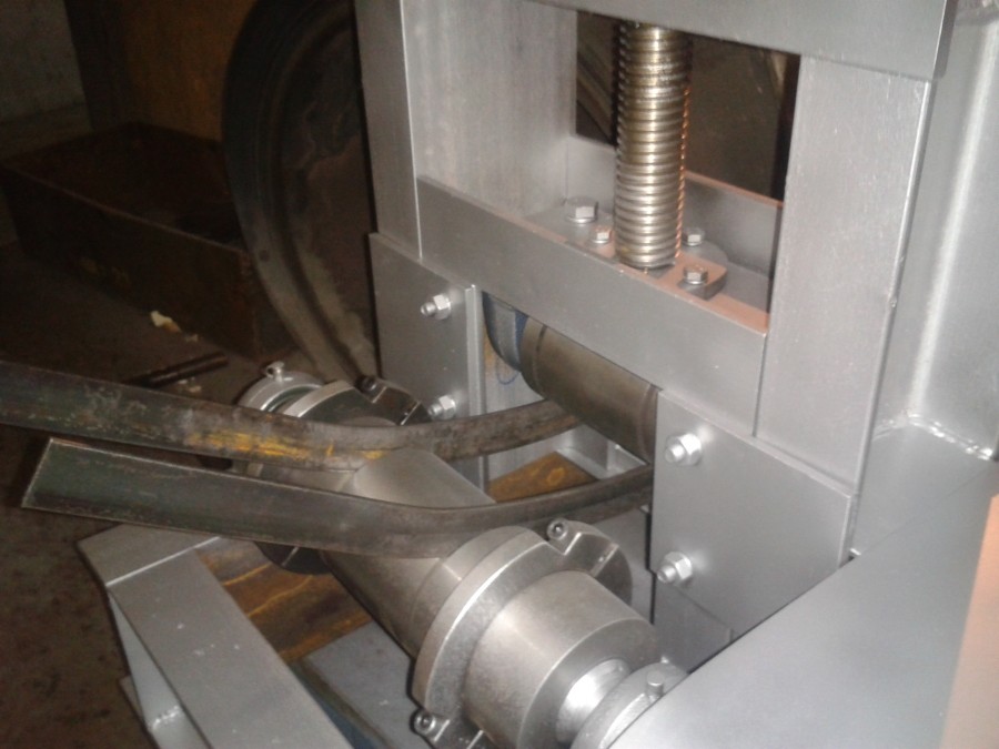 После прижатия домкратом профилированной трубы к роликовой поверхности происходит деформация металла трубы с одновременным прокатыванием профилированного материала;