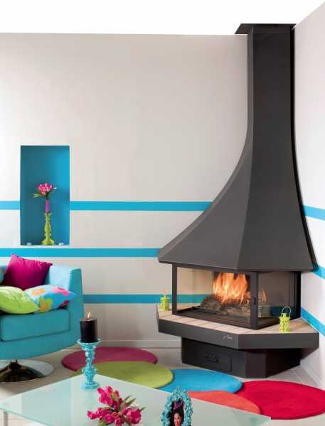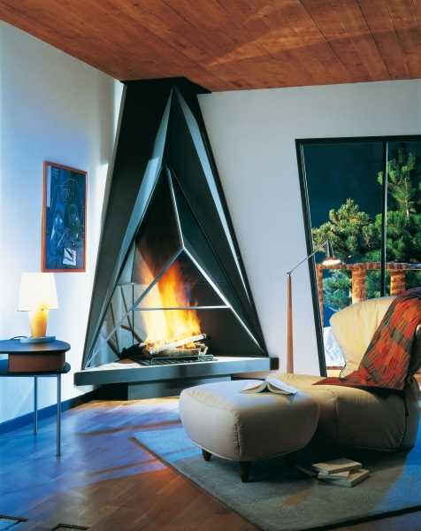 Несимметричные угловые камины – это перелом представлений о традиционных каминах, их конструкции могут быть самые разнообразные. Они изящны и необычны, отлично подойдут для небольших помещений. Любой дизайнер скажет, что современный несимметричный камин лучше всего впишется в современный интерьер, и в облицовке стен можно будет легко спрятать дымоход. Именно такой камин отлично зонирует пространство.