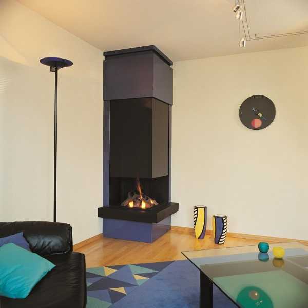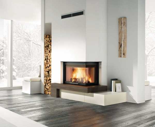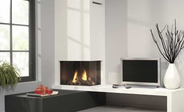 Угловой камин с огнеупорным стеклом — это стильно, красиво и к тому же доступно