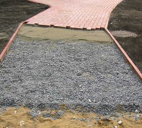 ΠΠ° Π΄Π½ΠΎ ΡΡΠ°Π½ΡΠ΅ΠΈ Π½ΡΠΆΠ½ΠΎ Π½Π°ΡΡΠΏΠ°ΡΡ ΡΠ΅Π±Π΅Π½ΠΊΡ. Π’ΠΎΠ»ΡΠΈΠ½Π° ΡΠ»ΠΎΡ Π΄ΠΎΠ»ΠΆΠ½Π° ΡΠΎΡΡΠ°Π²Π»ΡΡΡ 15-18 ΡΠΌ. Π©Π΅Π±Π΅Π½Ρ Π½Π°Π΄ΠΎ Ρ ΠΎΡΠΎΡΠΎ ΡΡΡΠ°ΠΌΠ±ΠΎΠ²Π°ΡΡ ΠΈ ΡΠ°Π·ΡΠΎΠ²Π½ΡΡΡ. Π‘Π²Π΅ΡΡ Ρ Π½Π°ΡΡΠΏΠ°Π΅ΡΡΡ ΠΈ ΡΠ°ΠΊΠΆΠ΅ ΡΠ°Π·ΡΠ°Π²Π½ΠΈΠ²Π°Π΅ΡΡΡ ΡΠΎΠ½ΠΊΠΈΠΉ ΡΠ»ΠΎΠΉ ΠΏΠ΅ΡΠΊΠ°, Π½Π° ΠΊΠΎΡΠΎΡΡΠΉ ΡΠΊΠ»Π°Π΄ΡΠ²Π°ΡΡ Π½Π΅ΡΠΊΠ°Π½ΠΎΠ΅ ΠΏΠΎΠ»ΠΎΡΠ½ΠΎ. ΠΡΠΆΠ½ΠΎ ΠΏΠΎΠ·Π°Π±ΠΎΡΠΈΡΡΡΡ ΠΎ ΡΠΎΠΌ, ΡΡΠΎΠ±Ρ Π²ΠΎΠ΄Π° ΡΡΠ΅ΠΊΠ°Π»Π° ΠΊ ΠΊΡΠ°ΡΠΌ Π΄ΠΎΡΠΎΠΆΠΊΠΈ. ΠΠ»Ρ ΡΡΠΎΠ³ΠΎ Π΄Π΅Π»Π°ΡΡ ΠΏΠΎΠΏΠ΅ΡΠ΅ΡΠ½ΡΠ΅ ΠΈ ΠΏΡΠΎΠ΄ΠΎΠ»ΡΠ½ΡΠ΅ ΡΠΊΠ»ΠΎΠ½Ρ. ΠΠΎΠ΄ΡΡΠΊΠ° ΠΏΠΎΠ΄ ΡΡΠΎΡΡΠ°ΡΠ½ΡΡ ΠΏΠ»ΠΈΡΠΊΡ Π²ΡΠΏΠΎΠ»Π½ΡΠ΅ΡΡΡ Π½Π° ΠΏΠΎΡΠ»Π΅Π΄Π½Π΅ΠΌ ΡΡΠ°ΠΏΠ΅ ΠΏΠΎΠ΄Π³ΠΎΡΠΎΠ²ΠΈΡΠ΅Π»ΡΠ½ΡΡ ΡΠ°Π±ΠΎΡ.