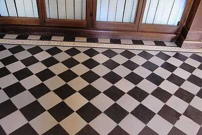 Также необходимо заметить и некоторую особенность рисунка. С учетом того, что каждая плитка в данном случае должна быть расположена строго под углом в 45 градусов, наиболее хорошим вариантом станет использование квадратного кафеля. Таким образом рисунок пола будет выглядеть максимально эффектно, даже при использовании одноцветных материалов.