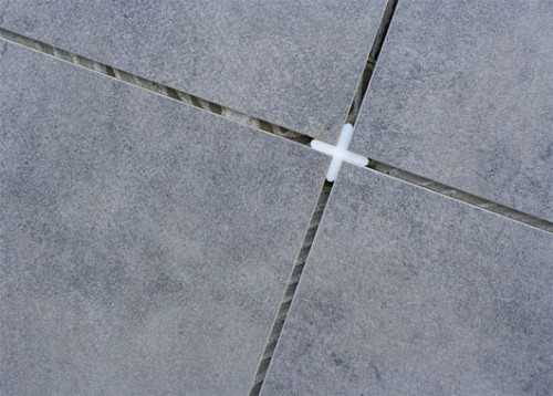 Между плитками необходимо оставлять ровный зазор. Его аккуратность достигается путем использования специальных пластиковых крестиков. Они укладываются в получившийся шов. Если плитка выравнивается по крестикам, то зазор получается ровный и аккуратный. Такой шов (шириной в 2‒5 мм) нужен, чтобы покрытие не вспучивалось.