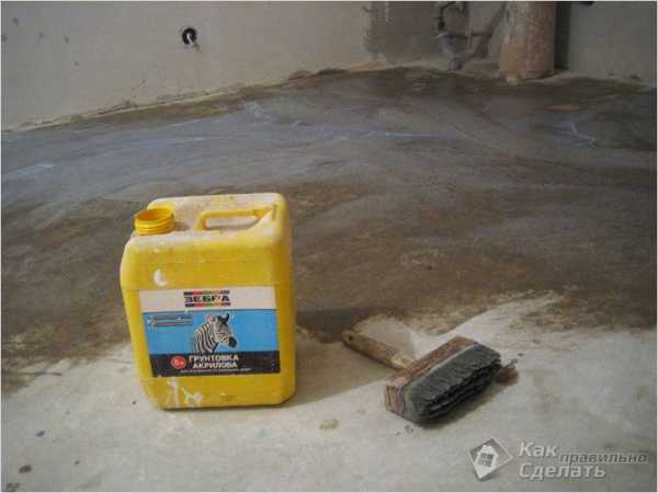 Готовое основание пола тщательно грунтуется. Обычно достаточно двух обработок.