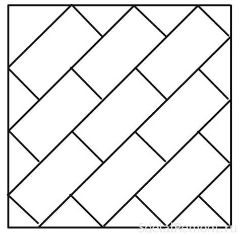 В большинстве своем для такого вида используется квадратная плитка, в то же время, в некоторых случаях хорошей заменой станет и прямоугольный кафель. Для лучшего понимая предлагаем Вам схему укладки традиционным способом: