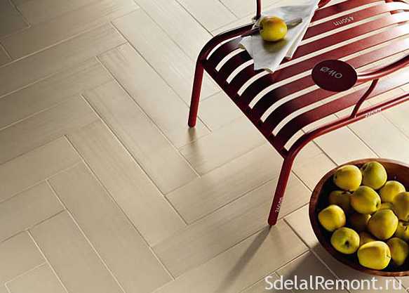 Рассматривая далее варианты укладки напольной плитки можно заметить довольно оригинальный способ. В частности, он подразумевает собой обустройство пола плиткой в виде паркета. Такое решение будет смотреться достаточно уникально, интересно и необычно. В частности, для укладки плитки елочкой используется исключительно материал прямоугольной формы. Рассматривая более подробней, можно отметить, что существуют всего две вариации такого типа: