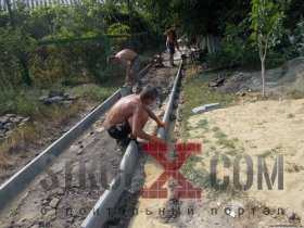 По бокам траншеи выкапываются небольшие канавки, дно их утрамбовывается и засыпается сантиметров на 5 песком. Затем туда на жидкий раствор устанавливаются бордюры. Стыки между ними следует пролить раствором и присыпать песком.